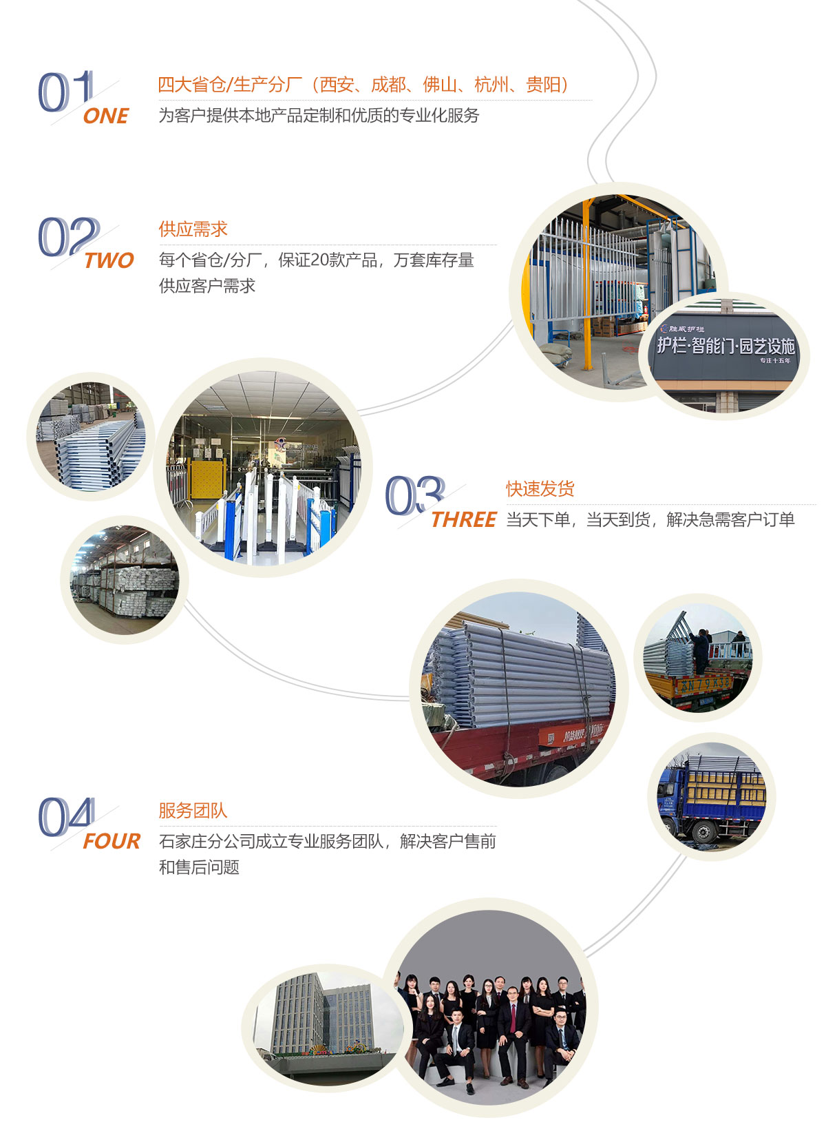 2018年,創(chuàng)建“勝威商城”線上批發(fā)、服務平臺,同時與國內(nèi)十多家專業(yè)規(guī)模化交通設施、鋼鋁型材、閘機門類產(chǎn)品的廠家達成戰(zhàn)略合作,聯(lián)合發(fā)起“伙伴聯(lián)營計劃”專營生態(tài)圈,為廣大用戶開展本地專業(yè)化服務。為行業(yè)更好未來,勝威人一直在努力!
